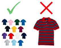 SHIRTS Collared polo shirts ONLY in any SOLID color or Calvin Donaldson T-shirt |